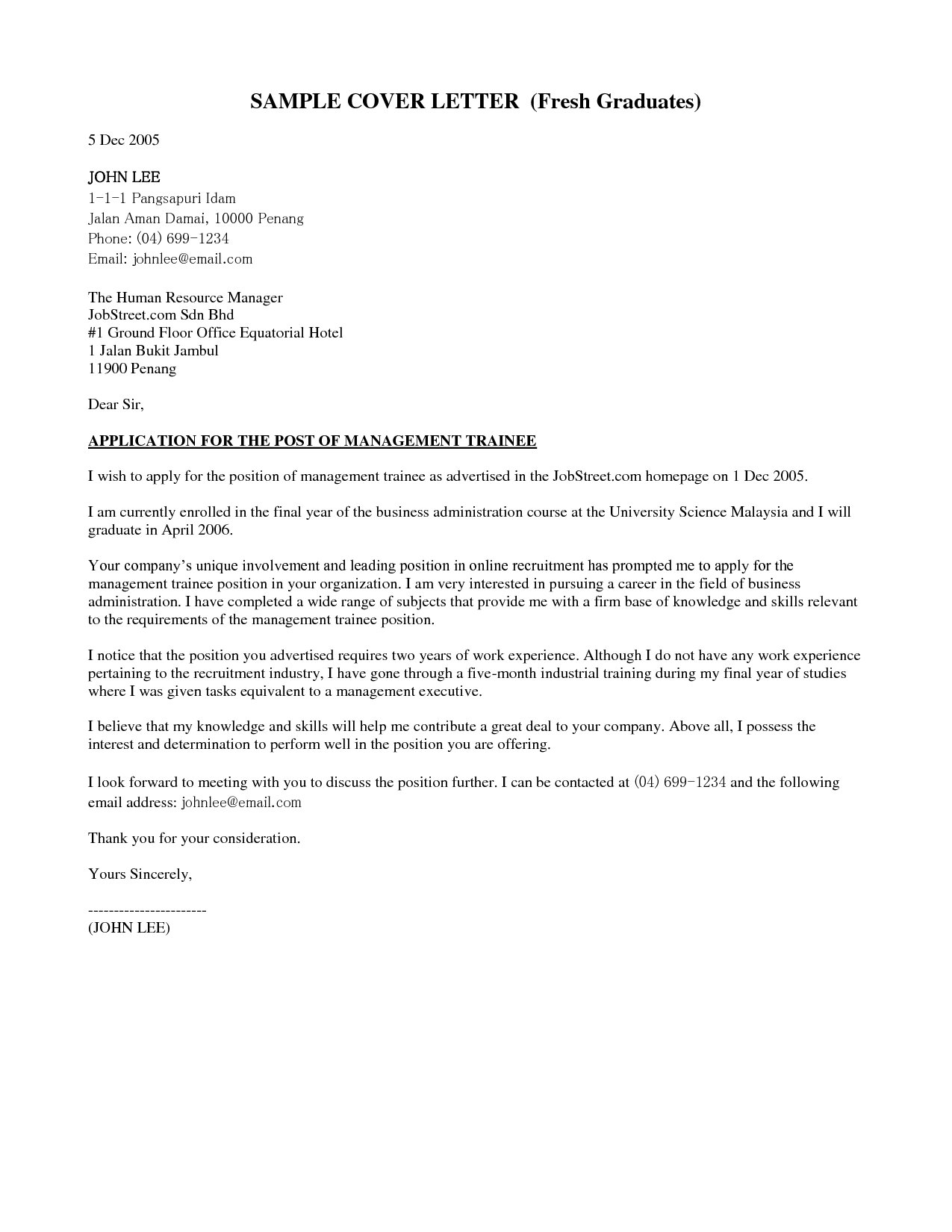 Application Letter Sample For A Fresh Graduate A Cover Letter